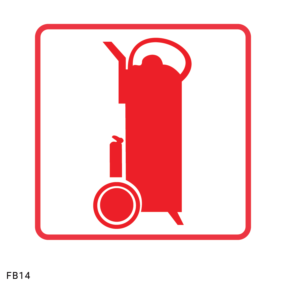 The FB14 Fire Trolley Safety Sign is used to indicate the location of a mobile fire extinguisher trolley, typically found in areas with high fire risk or where larger, wheeled fire extinguishers are required. The sign features a bold red trolley extinguisher symbol for quick visual identification during emergencies.